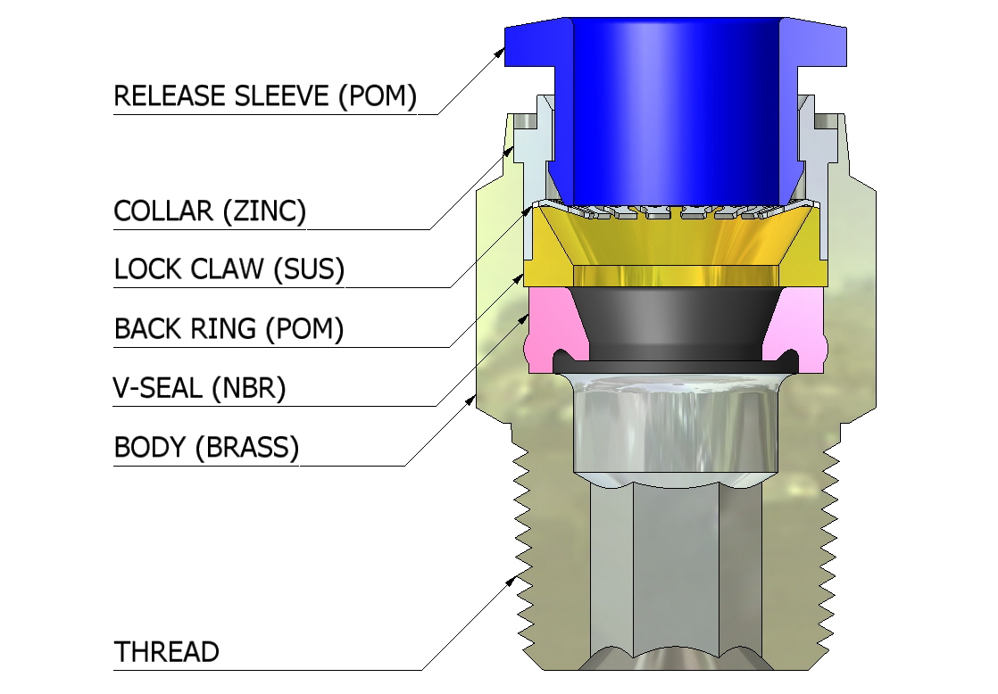 这是用于抗气压管道的一触式管道接头。 特征